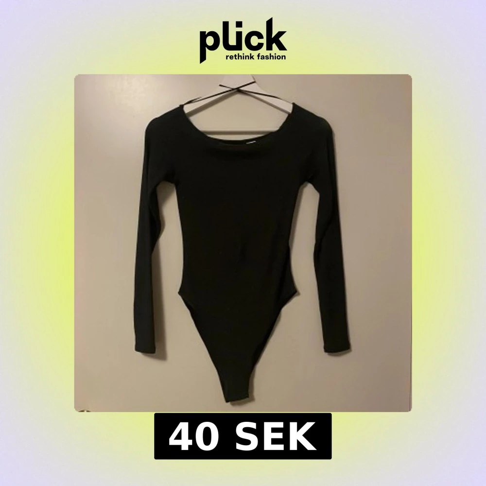 Säljer en svart långärmad body från DIVIDED i storlek S. Materialet har en glittrig finish som ger extra edge och passar perfekt till coola outfits. Bodyn har en rundad hals och är figurnära med stretchigt tyg för skön passform.