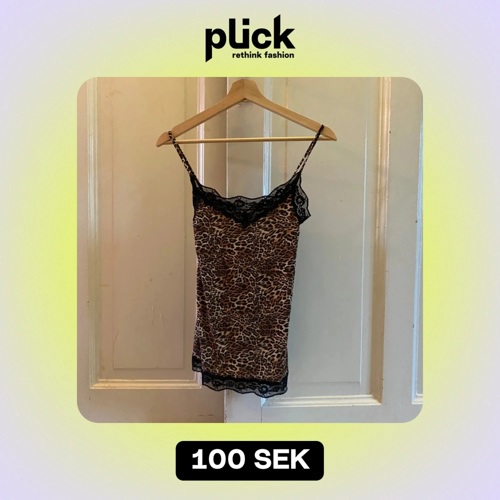 Säljer ett snyggt leopardmönstrat linne med svarta spetsdetaljer vid halsringningen och nederkanten. Perfekt för en utekväll eller ev vardags outfit med jeans. Linnet har smala axelband och är i mycket bra skick.