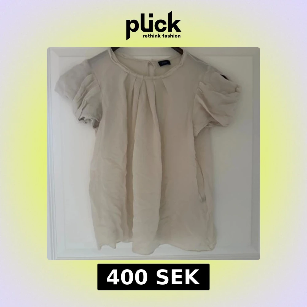 Säljer en söt beige blus från Joseph med korta puffärmar och rund halsringning. ❤️❤️