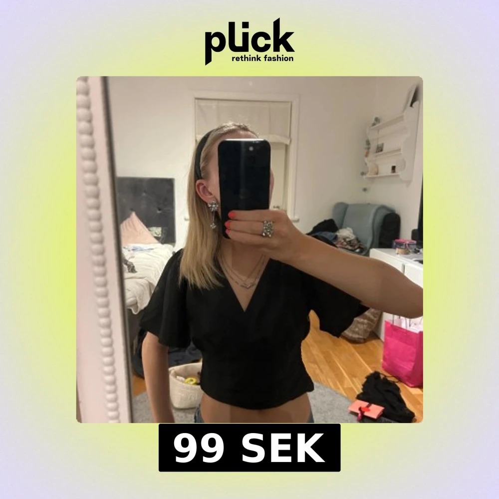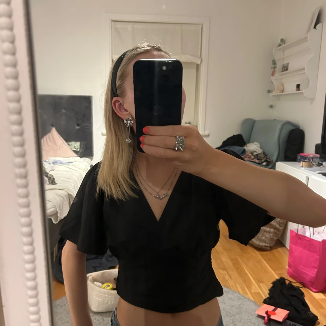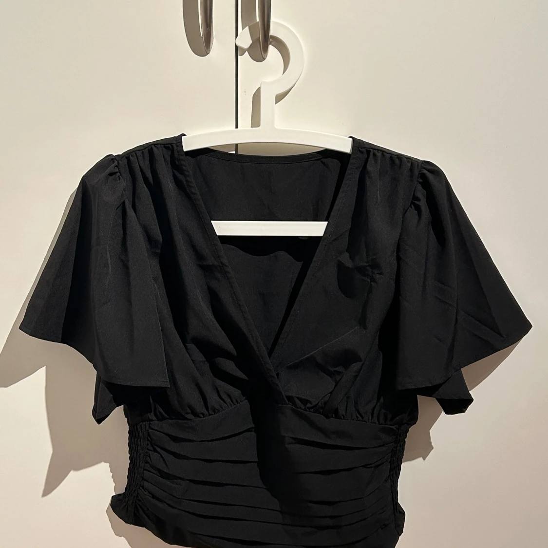 supersnygg svart v-ringad topp med volang ärmar från??? köparen står för frakten!!