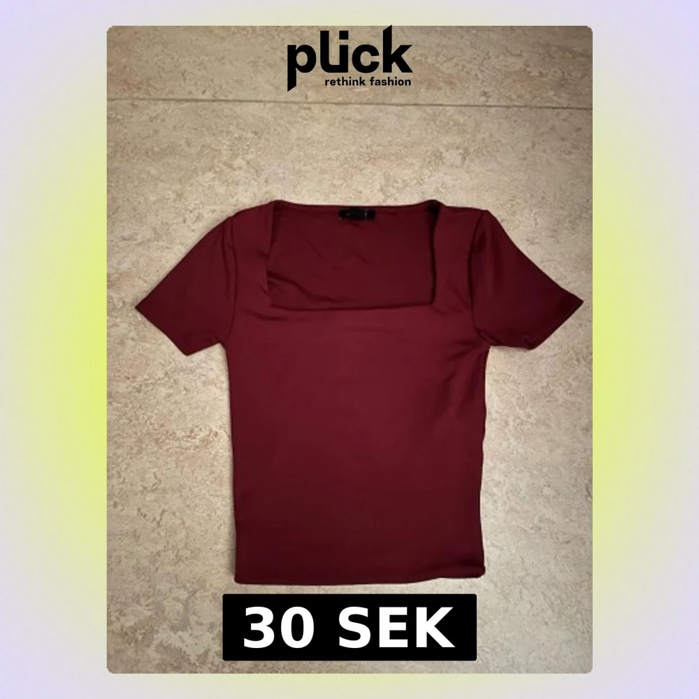 Säljer en vinröd topp från Amisu med korta ärmar och snygg fyrkantig ringning. Köpte den från New yorker.