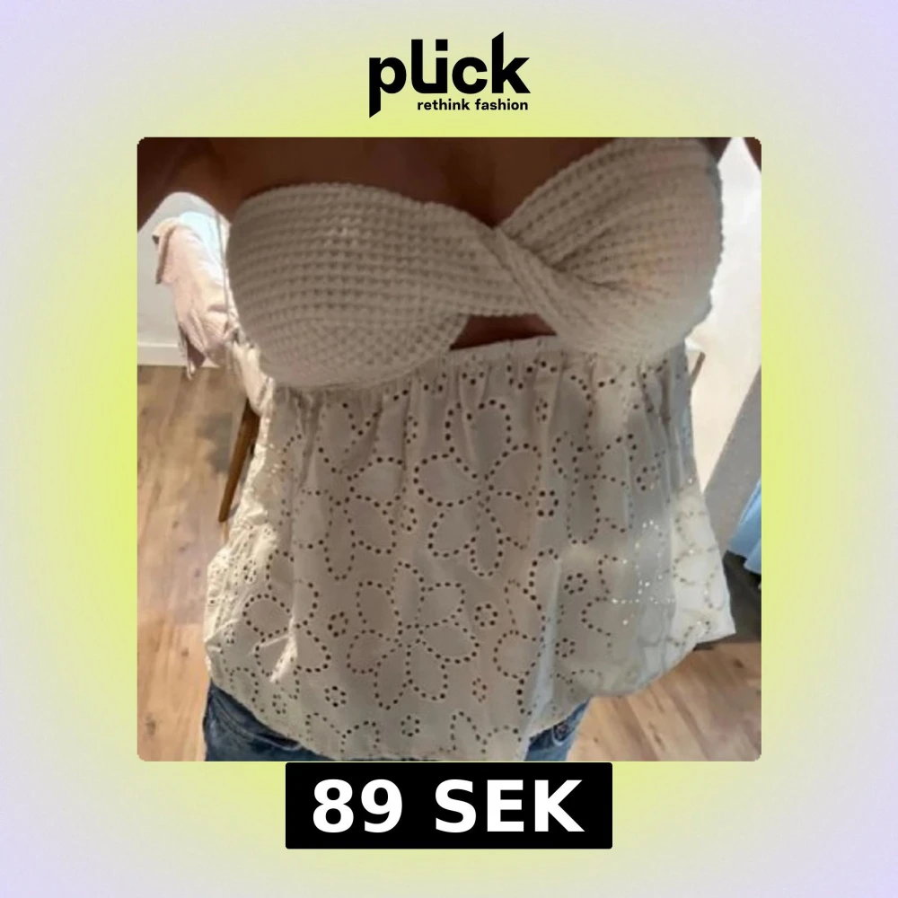 Supersöt vit bandeau tubtopp med virkad twistad överdel och broderade blommor i tyget nedtill. Toppen är ärmlös och har en luftig, somrig känsla. Perfekt till jeans eller kjol för en fräsch look.