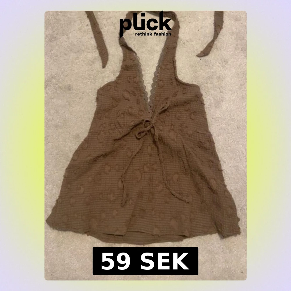 Säljer en brun halterneck topp med knyt i nacken och under bysten. Helt ny med prislapp