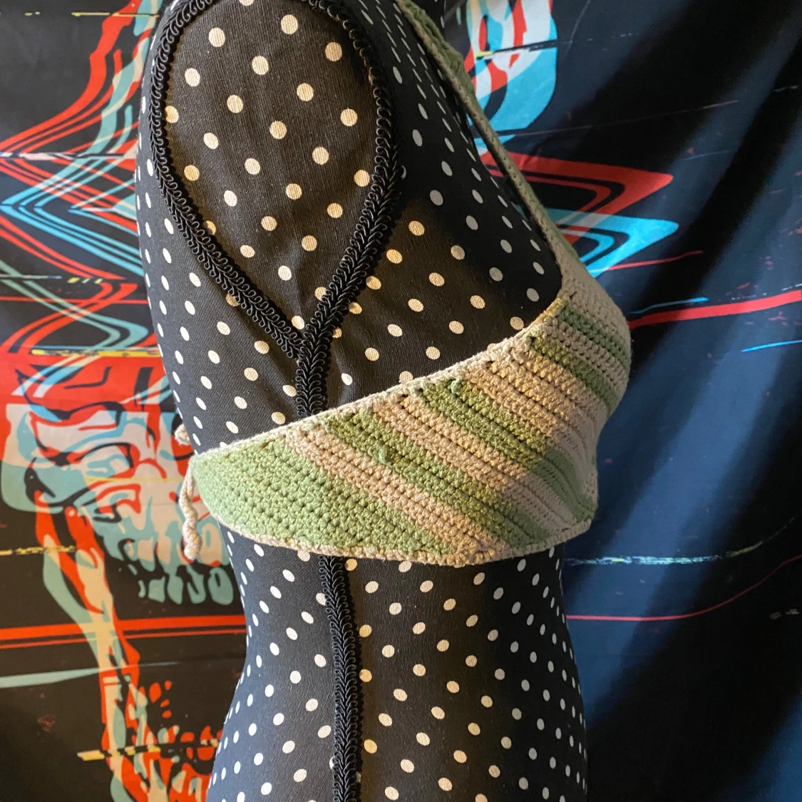 Gjord av mitt ex farmor. Super fin jätte bra kvalitet och går att tvätta. Men inte mina färger. Passar xs-m