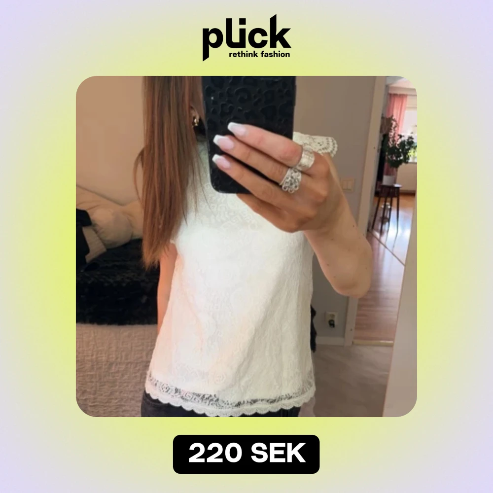 Säljer en superfin vit spetsblus med vackra detaljer. Den är ärmlös och har en söt volangkant vid ärmhålen. Perfekt för sommarens alla fester eller en dag på stan. Blusen är använd några gånger men har inga defekter!🥰❣️💕