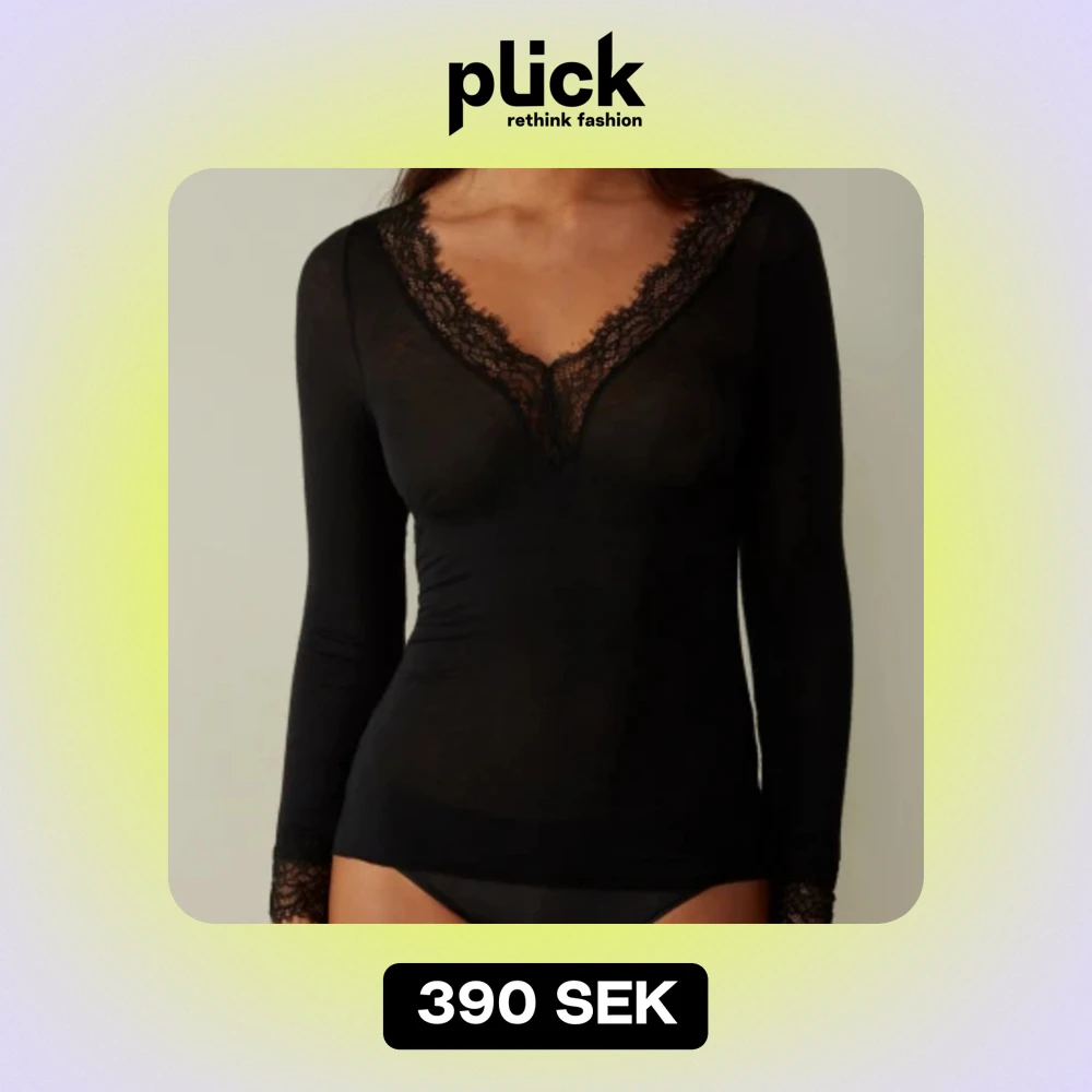 Säljer en svart långärmad intimissimi topp med v-ringning och spetsdetaljer runt halsen. Knappt använd.