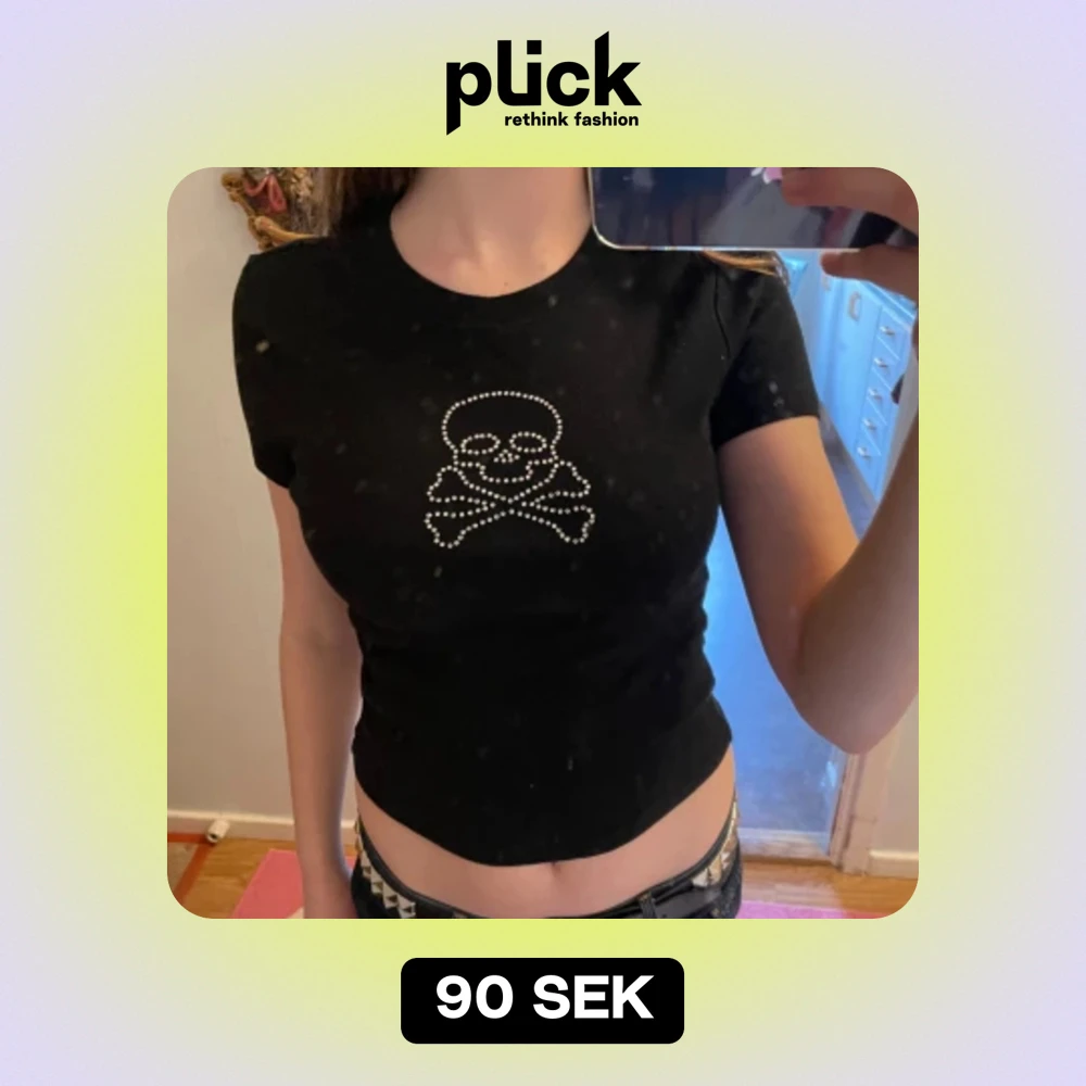 Svart tight t-shirt/topp med dödskalle rinestones