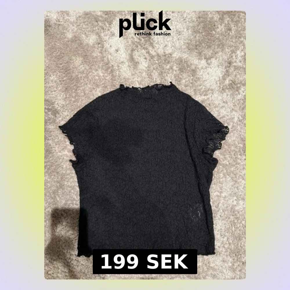 Svart topp från H&m med korta ärmar och vågiga kanter. Tunt spetsliknande material som ger en cool och trendig look. Perfekt att styla med jeans eller kjol för en snygg outfit.