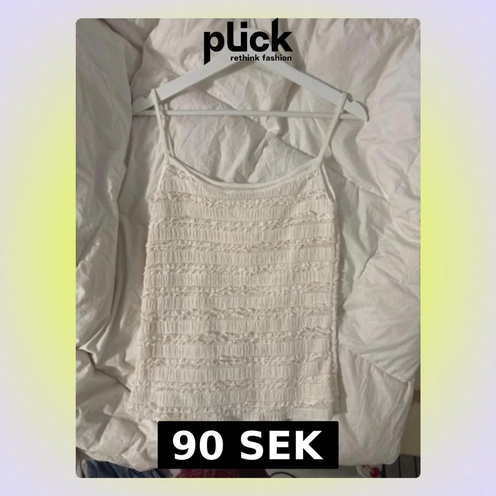 Säljer en söt vit linnetopp med smock och tunna axelband. Toppen har ett diskret strukturmönster och är perfekt för varma dagar. Passar till jeans, kjol eller shorts för en fräsch look.