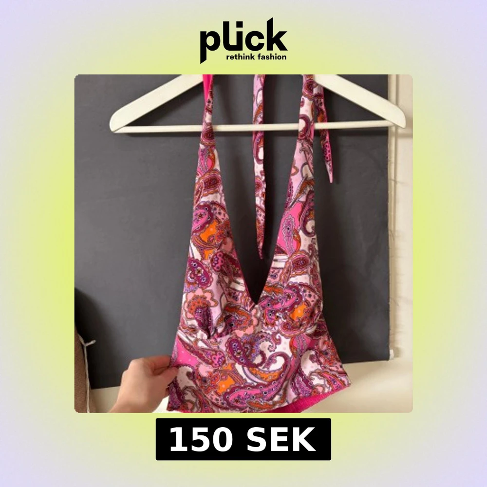 Säljer en snygg halterneck topp med paisleymönster i rosa, orange och vitt. Toppen har en djup v-ringning och knytband i nacken. Perfekt för sommarens alla tillfällen!