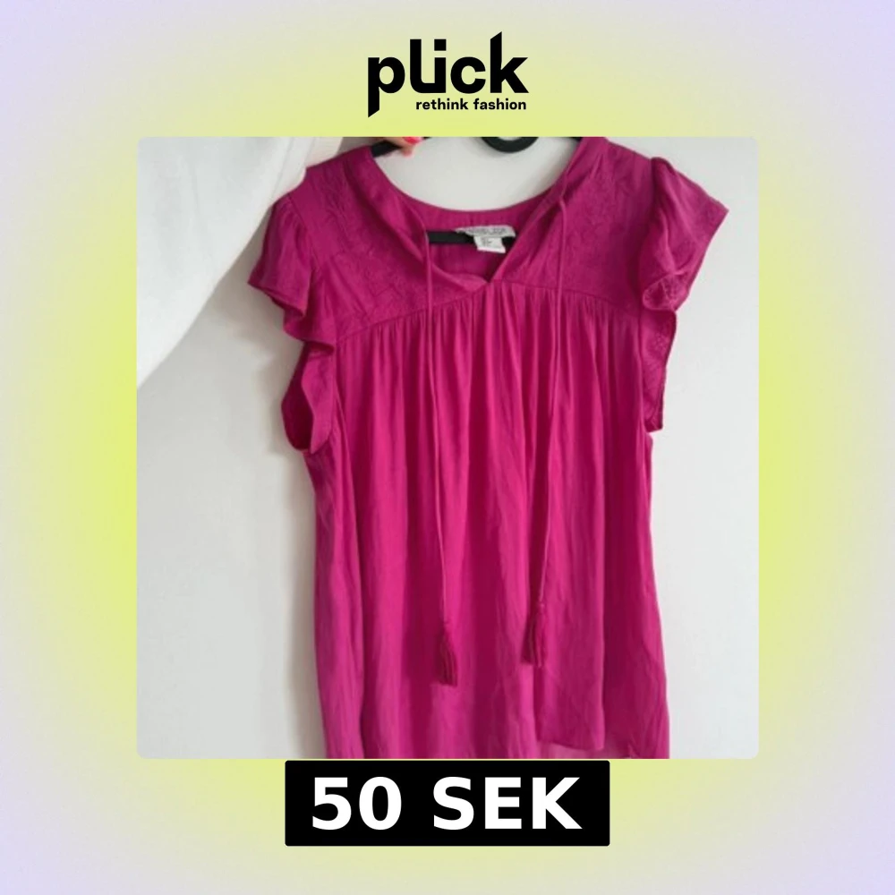 Supersöt rosa blus med volangärmar och broderade detaljer upptill. Blusen har knytband vid halsen och är tillverkad i ett lätt, luftigt material som passar perfekt till varma dagar.