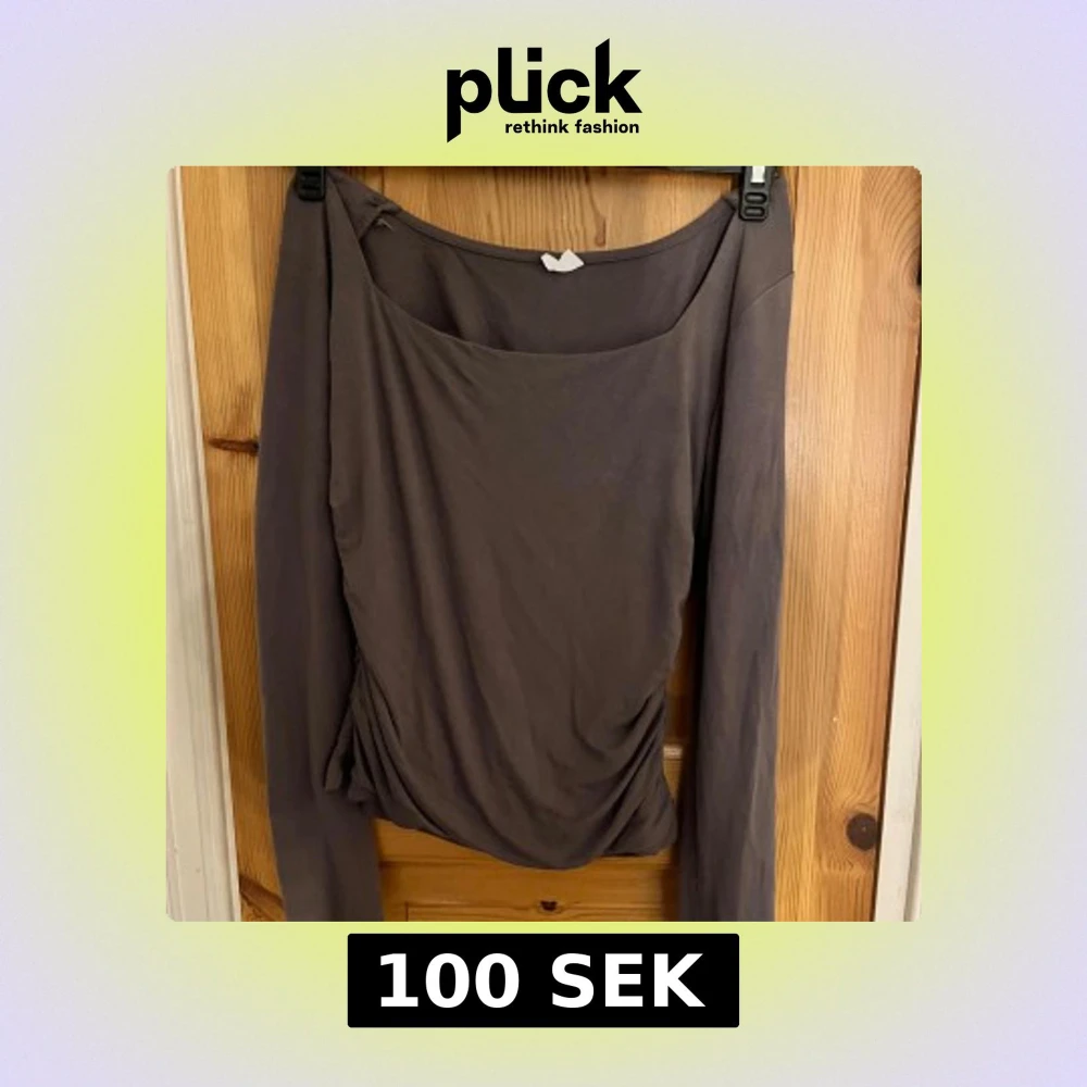 Säljer en stilren mörkgrå/brun långärmad topp med snygg drapering helt oanvänd från ullared.