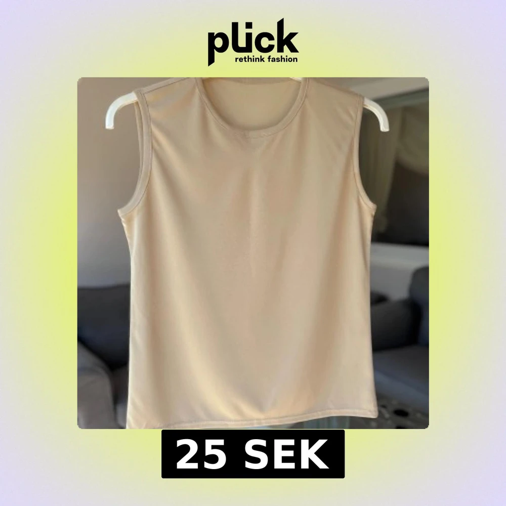 En stilren beige topp med rund halsringning och ärmlös design. Toppen är tillverkad i ett mjukt och stretchigt material som ger en clean och enkel look. Perfekt att matcha med jeans eller kjol för en avslappnad vibe. Mindre fläck som skapar kontrast i färgen vid armhåla.