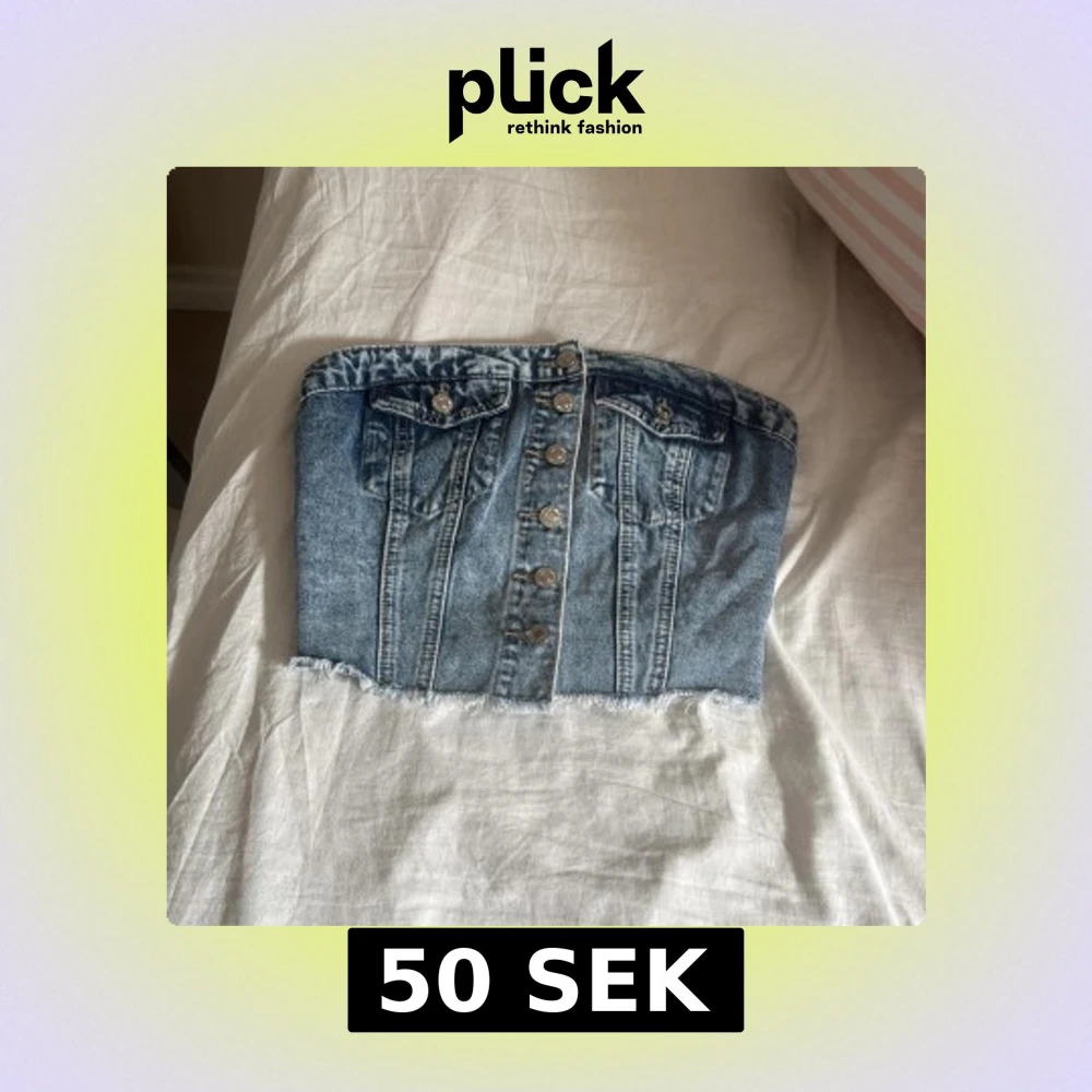 Snygg jeans tubtopp med knappar framtill och två dekorativa bröstfickor. Helt nytt skick, oanvänd. Den är för liten för mig 💕Ställ frågor om du vill veta mer💕