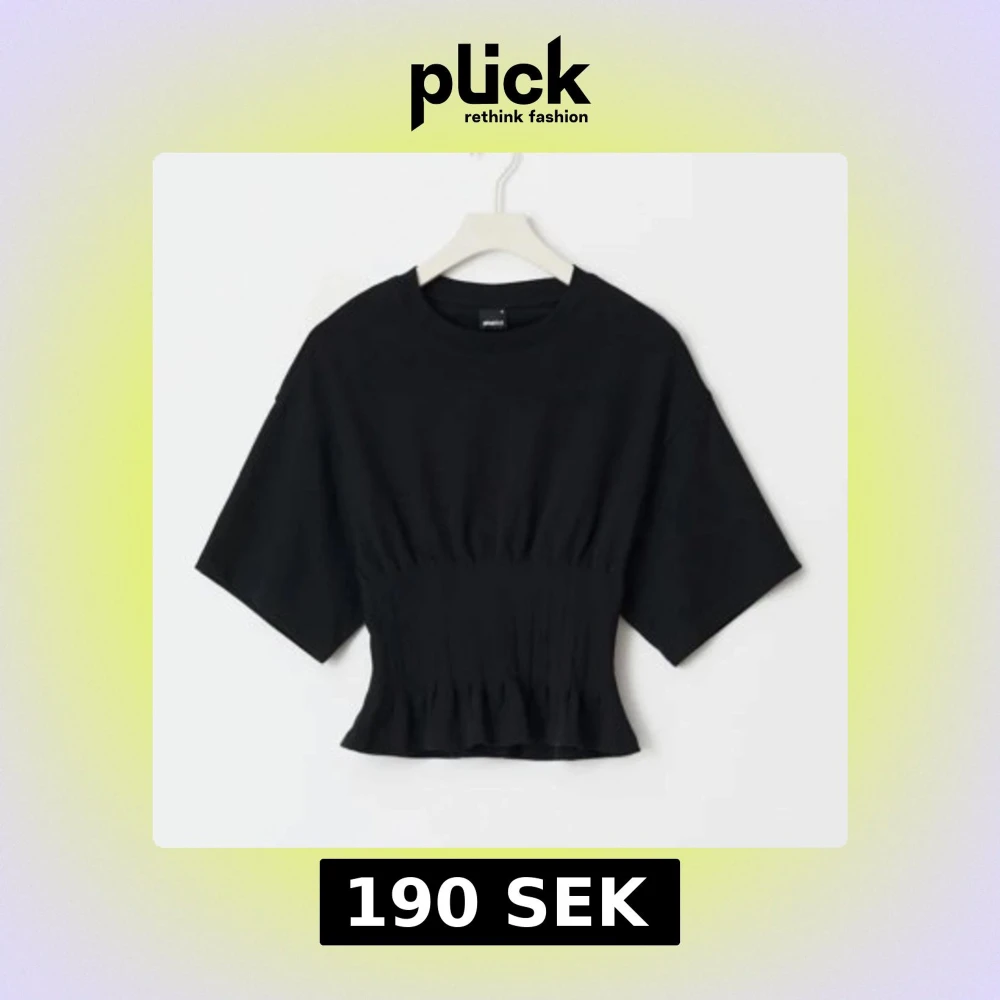 Säljer en svart topp med rynkdetalj i midjan. Toppen har korta ärmar och rund halsringning. Har använt den 1-2 gånger. Kan skicka fler bild vid förfrågan!! Den är storlek M fast jag som är S passar jättebra i den.