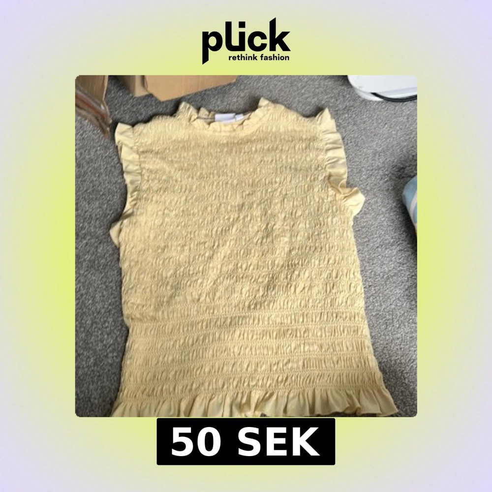Supersöt ljusgul topp med smockad framsida och volangdetaljer vid ärmhål, hals och nederkant. Ärmlös modell i mjuk bomull, perfekt för varma dagar. Enkel att styla med jeans eller kjol för en fräsch look.