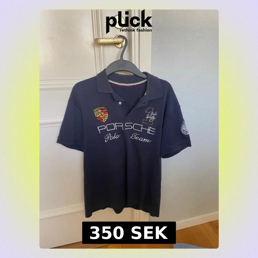 Snygg mörkblå pikétröja från Porsche med broderade detaljer och logga på bröstet samt texten 'Porsche Polo Team'. Klassisk krage och korta ärmar. Perfekt för dig som gillar sportig stil och exklusiva märken.