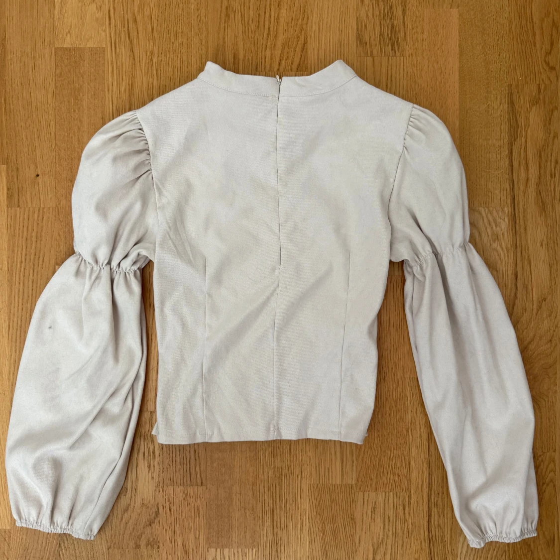 Ljusbeige blus med puffärmar