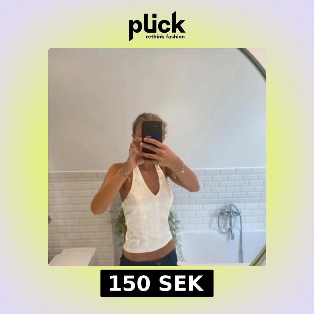 Säljer denna fina vita satintopp som man knyter i nacken. Eftersom man knyter den själv kan man välja hur högt upp urringningen ska sitta och hur croppad den ska vara nertill:) Den har även en dragkedja på sidan så den blir lätt att ta på och av. Storlek S. (Behöver strykas) Bara att skriva vid frågor eller funderingar💕
