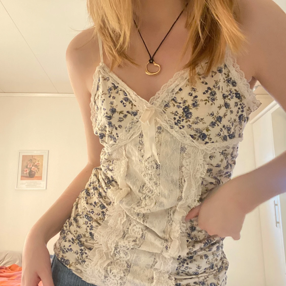 Jätte vacker spets topp i storleken S med figursydd midja😻