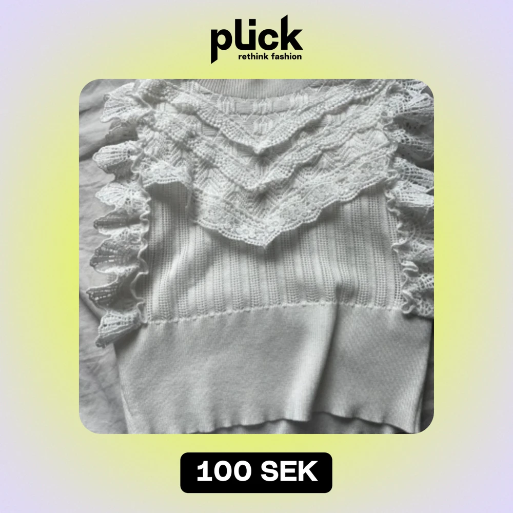 Säljer denna jätte fina volang tröjan som kommer vara jätte fin i sommar!! Aldrig använd bara testat den!! Den jag en liten smink fläck men den syns inte!! (Katt och hund i hemmet!!)
