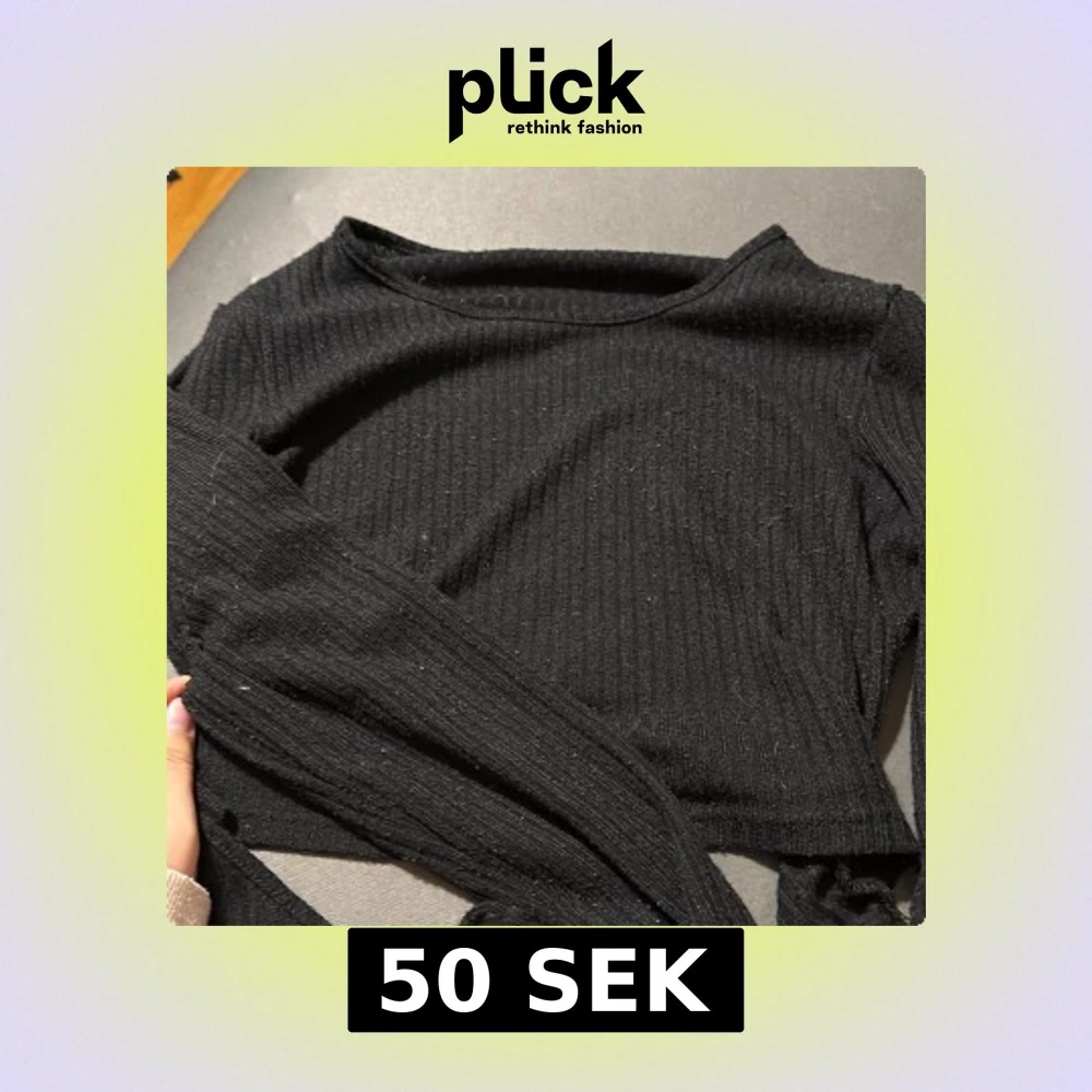 En svart långärmad topp med ribbad struktur. Modellen är enkel och tight, perfekt att styla med jeans eller kjol. Toppens material känns mjukt och stretchigt, vilket gör den bekväm att bära hela dagen. Går att knyta vid ryggen!
