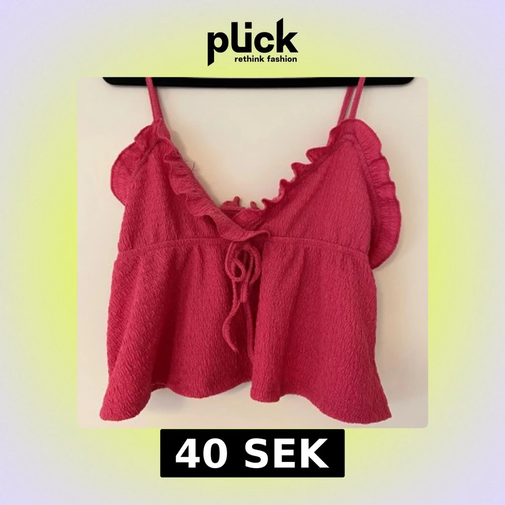 Söt rosa croppad linnetopp med volangdetaljer och knytning framtill. Tunna axelband och en luftig passform.
