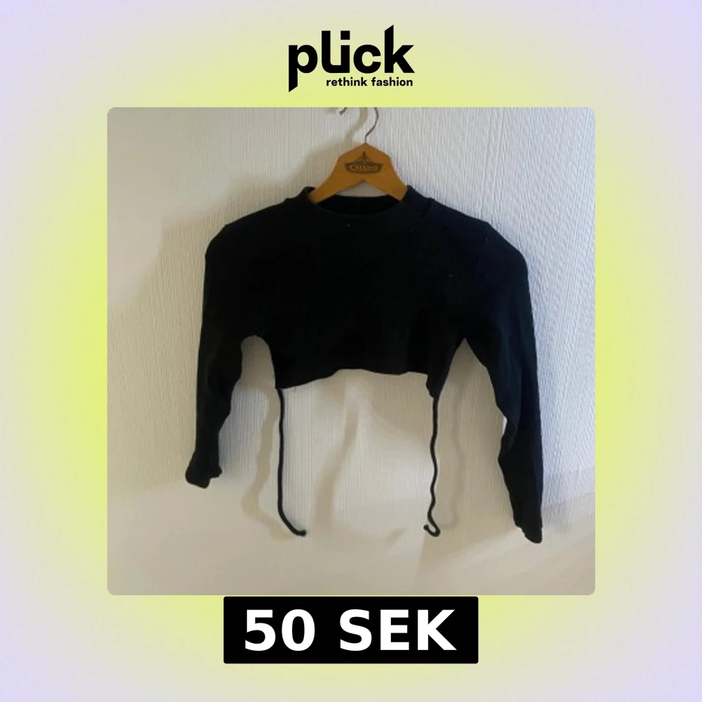Svart croppad topp med långa ärmar och snörning framtill. Enkel och stilren design som passar perfekt till höga jeans eller kjol. Mjuk och stretchig känsla för en bekväm passform.