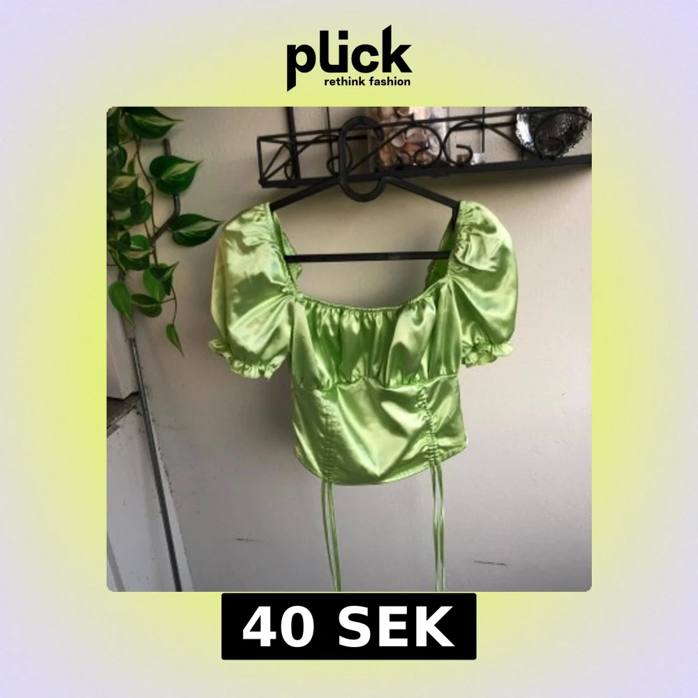 Superfin ljusgrön blus i satin med puffiga korta ärmar och söt rynkdetalj framtill. Toppen har en smal diskret dragkedja på sidan. Toppen är S passar XS oxå.