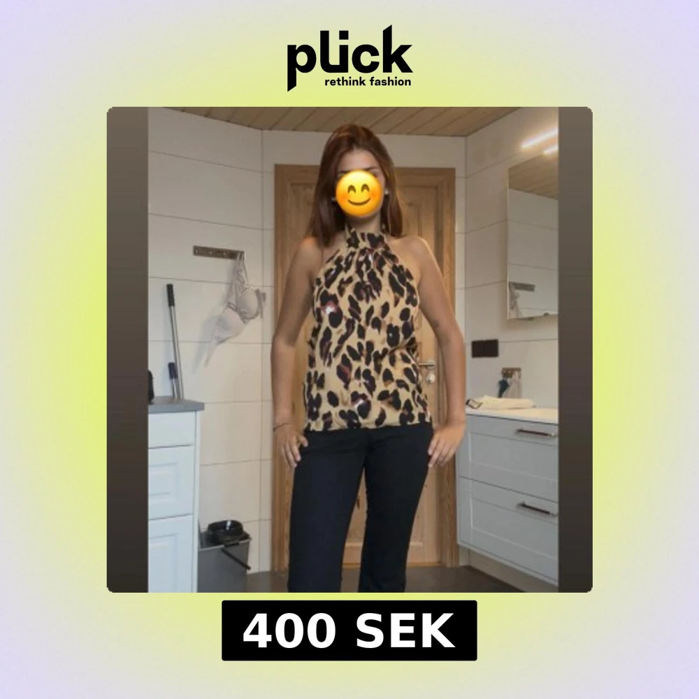 Säljer en beige halterneck topp med leopardmönster i svart, brunt och inslag av vinrött. Toppen är ärmlös och har öppen rygg, vilket ger en snygg och trendig look. Perfekt för dig som vill sticka ut med ett djurmönster och gillar att bära något unikt.