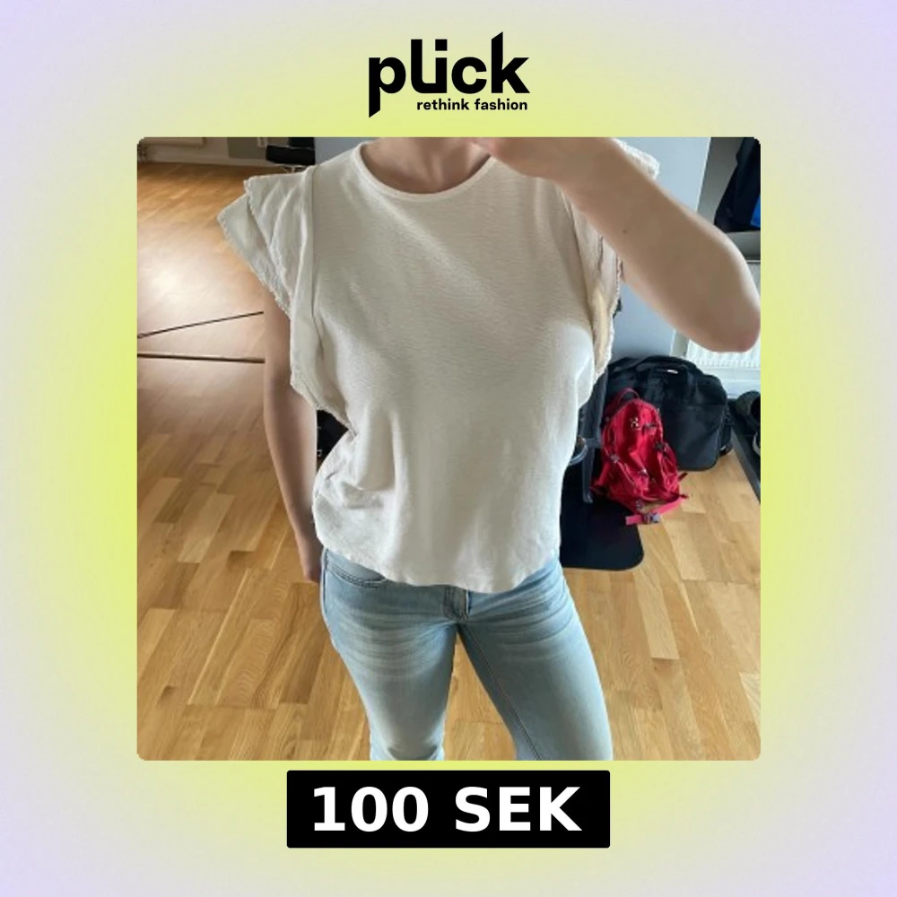 Säljer en söt vit blus från Holly & Whyte med volangdetaljer på axlarna. Blusen är ärmlös och har en lätt strukturerad yta. Perfekt till jeans eller kjol för en fräsch look. Använd ett fåtal gånger.