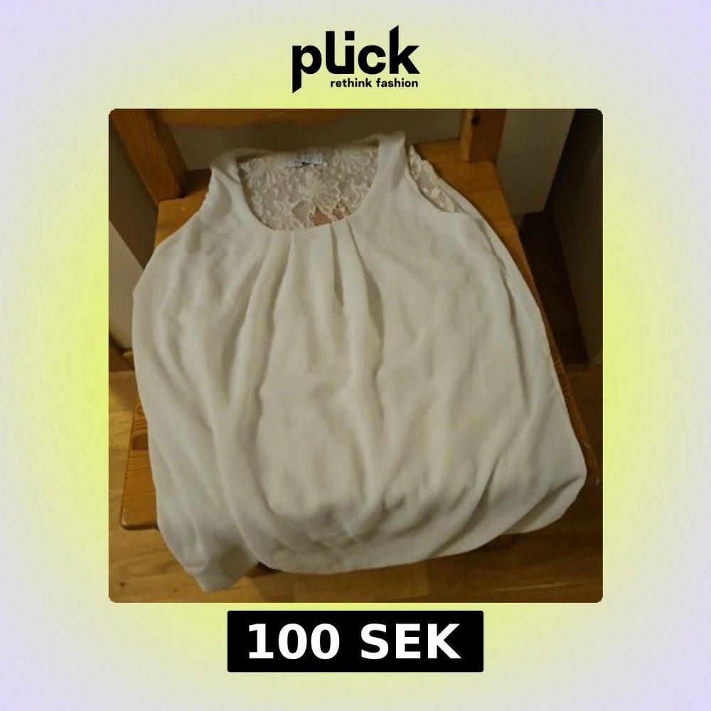 Supersöt vit blus från HLYS i storlek S. Toppen är ärmlös och har vackra spetsdetaljer både fram och bak, vilket ger en romantisk och trendig känsla. Lätt och luftig modell med rund halsringning och snyggt omlott bakstycke.