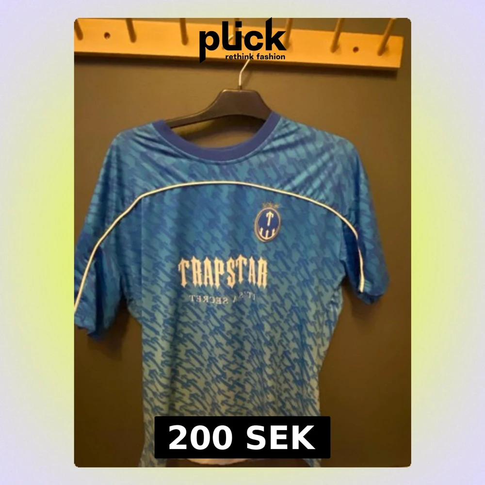 Säljer en blå kortärmad topp från Trapstar med vit text och nummer 22 på ryggen. Den är är overzized. Hör av dig om du är intresserad!