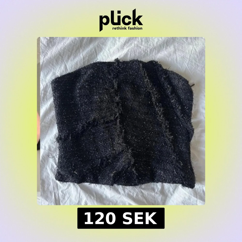 Säljer en svart glittrig topp från Zara i storlek S. Toppen är croppad och har en rå, fransig struktur med glittriga trådar som ger en cool effekt. Perfekt för dig som gillar att sticka ut med detaljer.