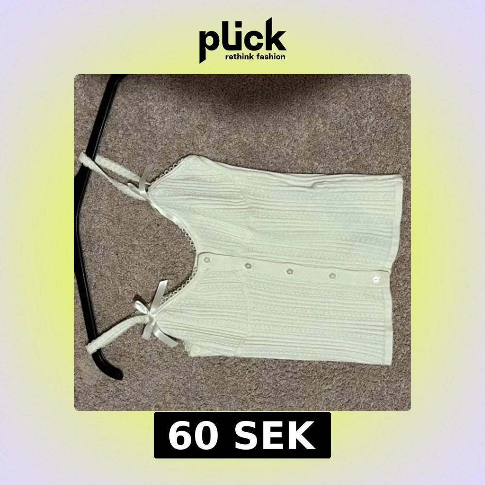Supersöt vit linnetopp med ribbat mönster och små knappar framtill. Axelbanden är dekorerade med spets och söta rosetter. Perfekt för en somrig look. Strl s