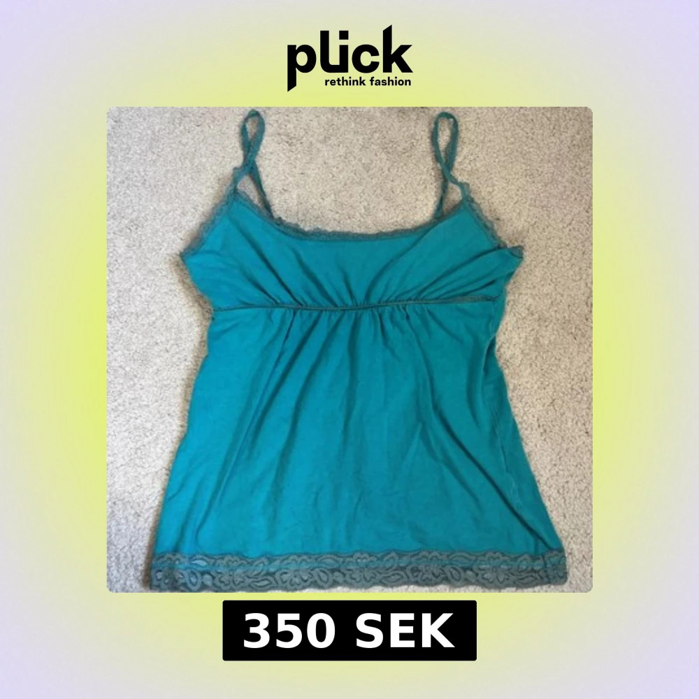 Turkos linnetopp med smala axelband inbyggd bh och dekorativ spetskant upptill och nedtill. Toppen har en lätt rynkad detalj under bysten och är tillverkad i mjuk bomull. Perfekt för dig som gillar 2000s stil och snygga detaljer.💕