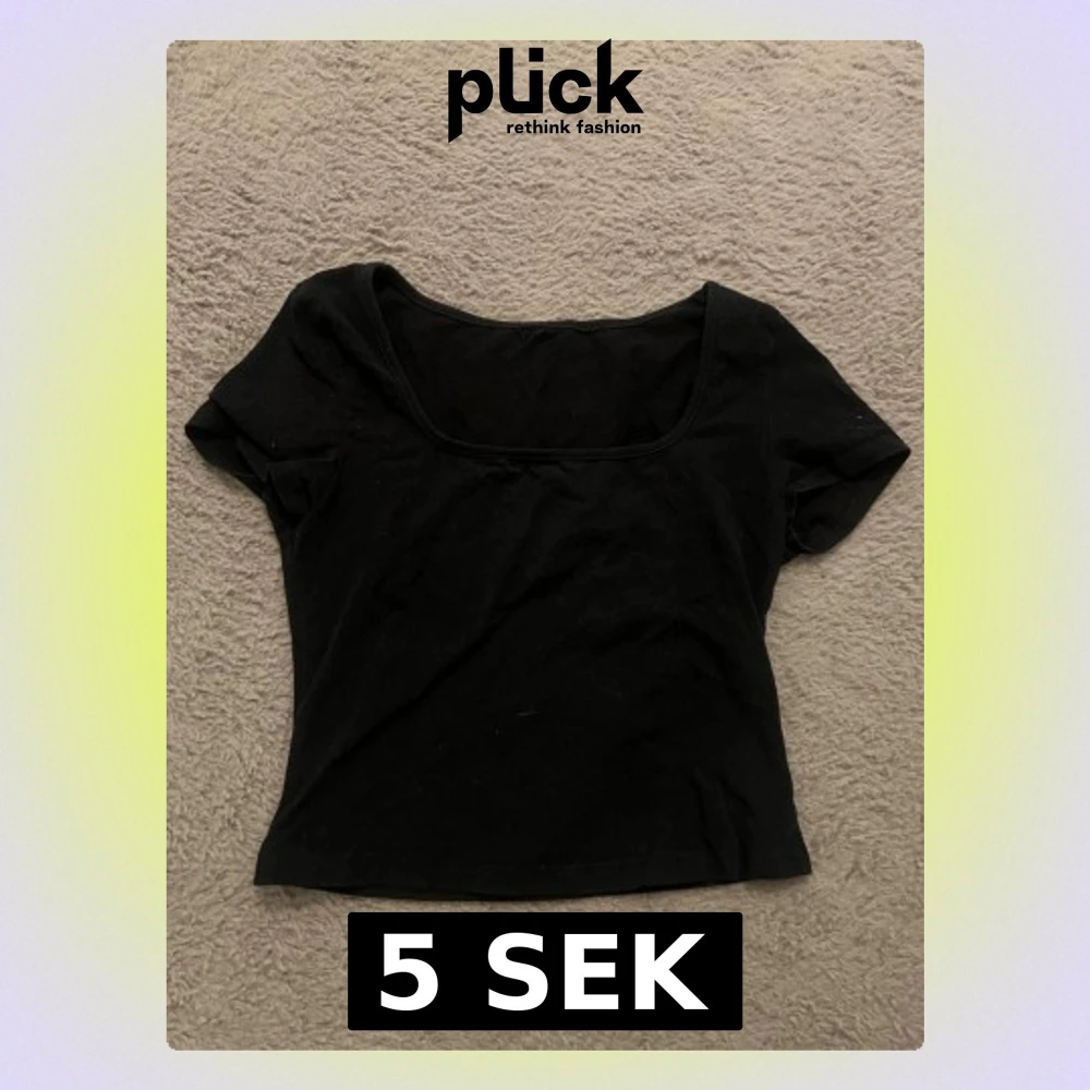 En enkel svart croppad topp med korta ärmar och rundad urringning. Perfekt att matcha med jeans eller kjol för en clean look. Tunn och mjuk i materialet, passar till många olika stilar. Aningen tajt på mig dom brukar ha S