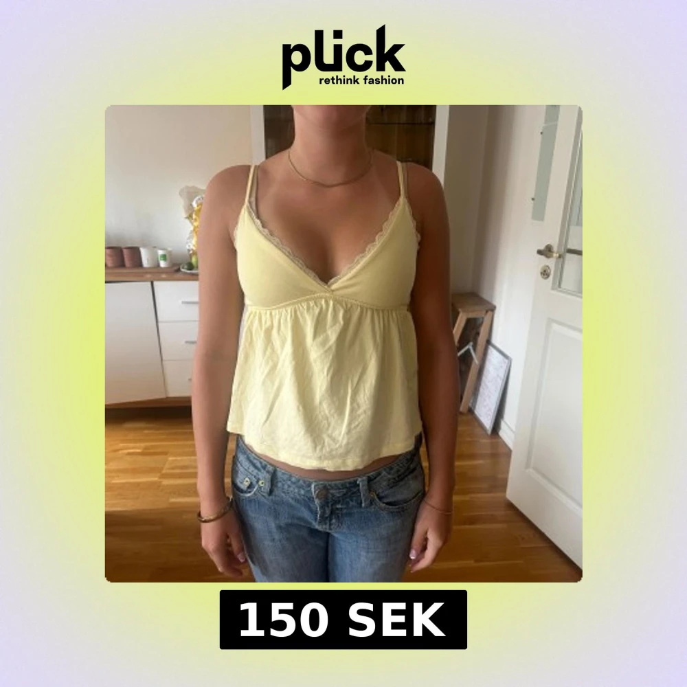 Supersöt ljusgul linnetopp med smala axelband från Subdued i storlek S men passar också som XS.