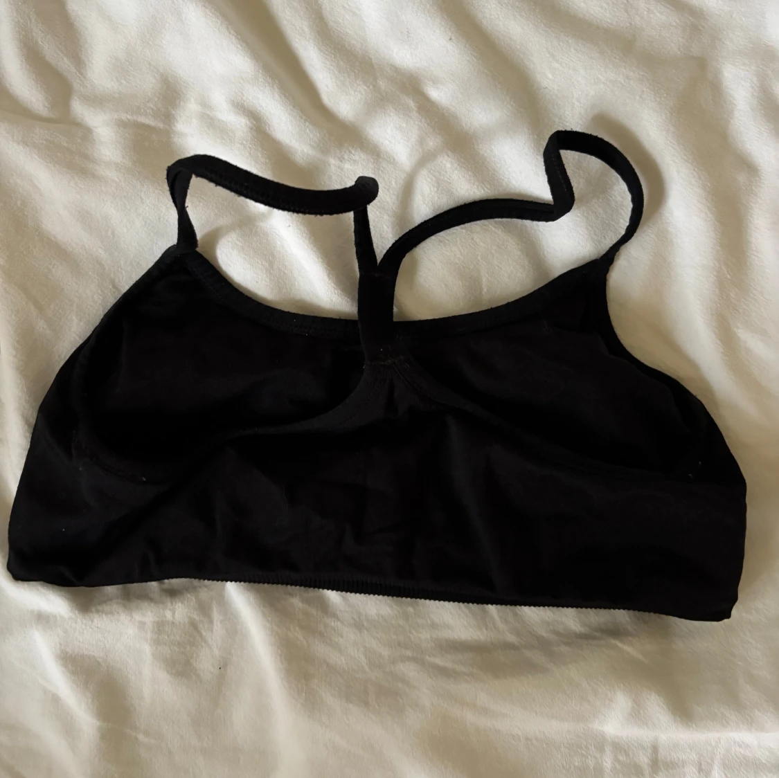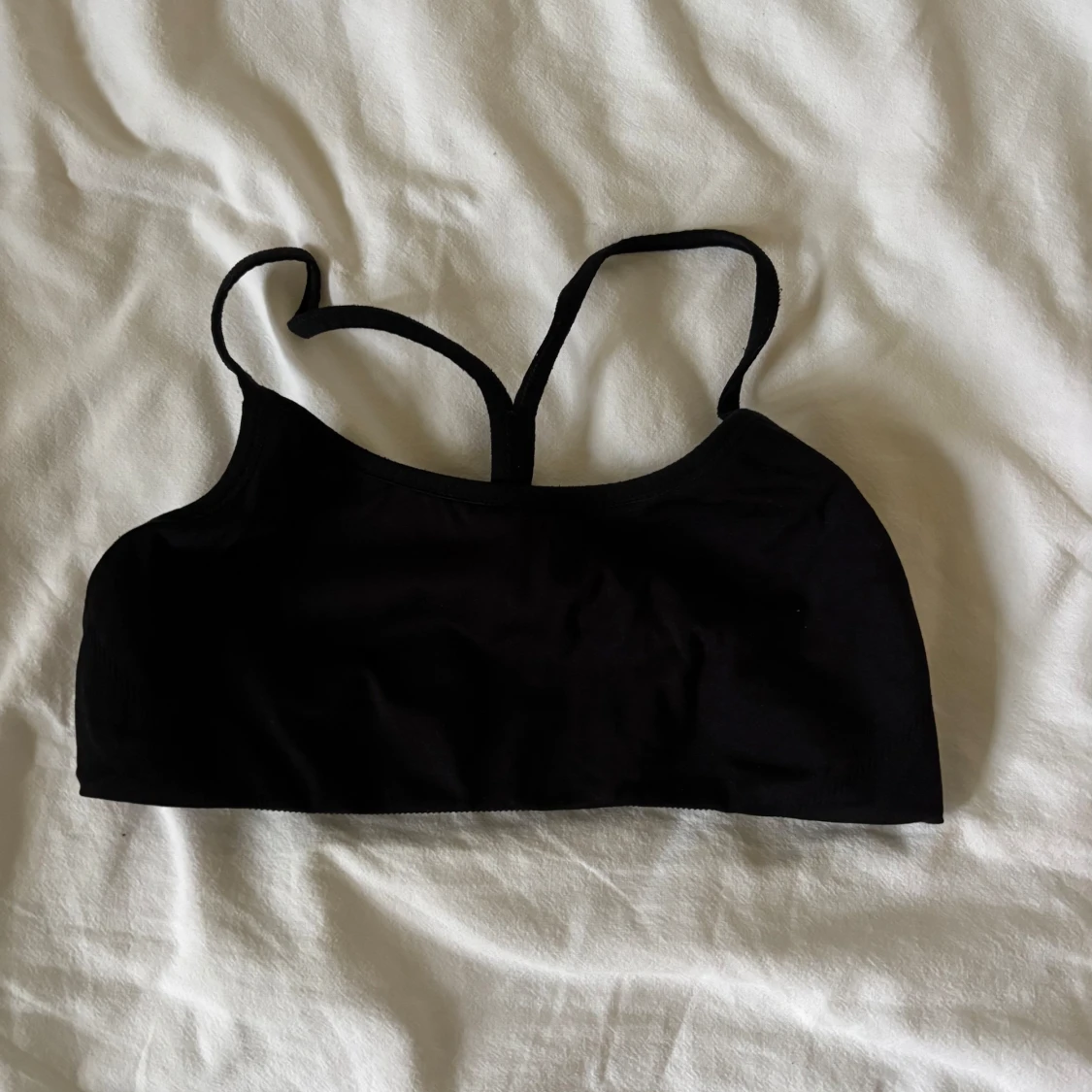 En enkel och stilren svart linnetopp med smala axelband som korsas i ryggen. Sport-bh passar perfekt för träning. Materialet känns mjukt och stretchigt, vilket gör den bekväm!