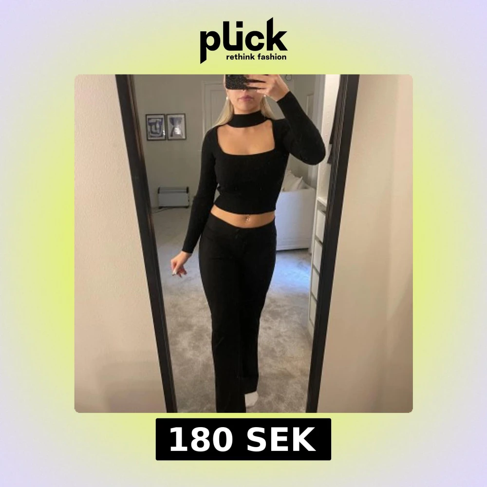 Snygg svart långärmad ribbad topp med halschoker, från bershka. Använd ca 3 gånger så ser helt ny ut!! Hör av dig för frågor🥰