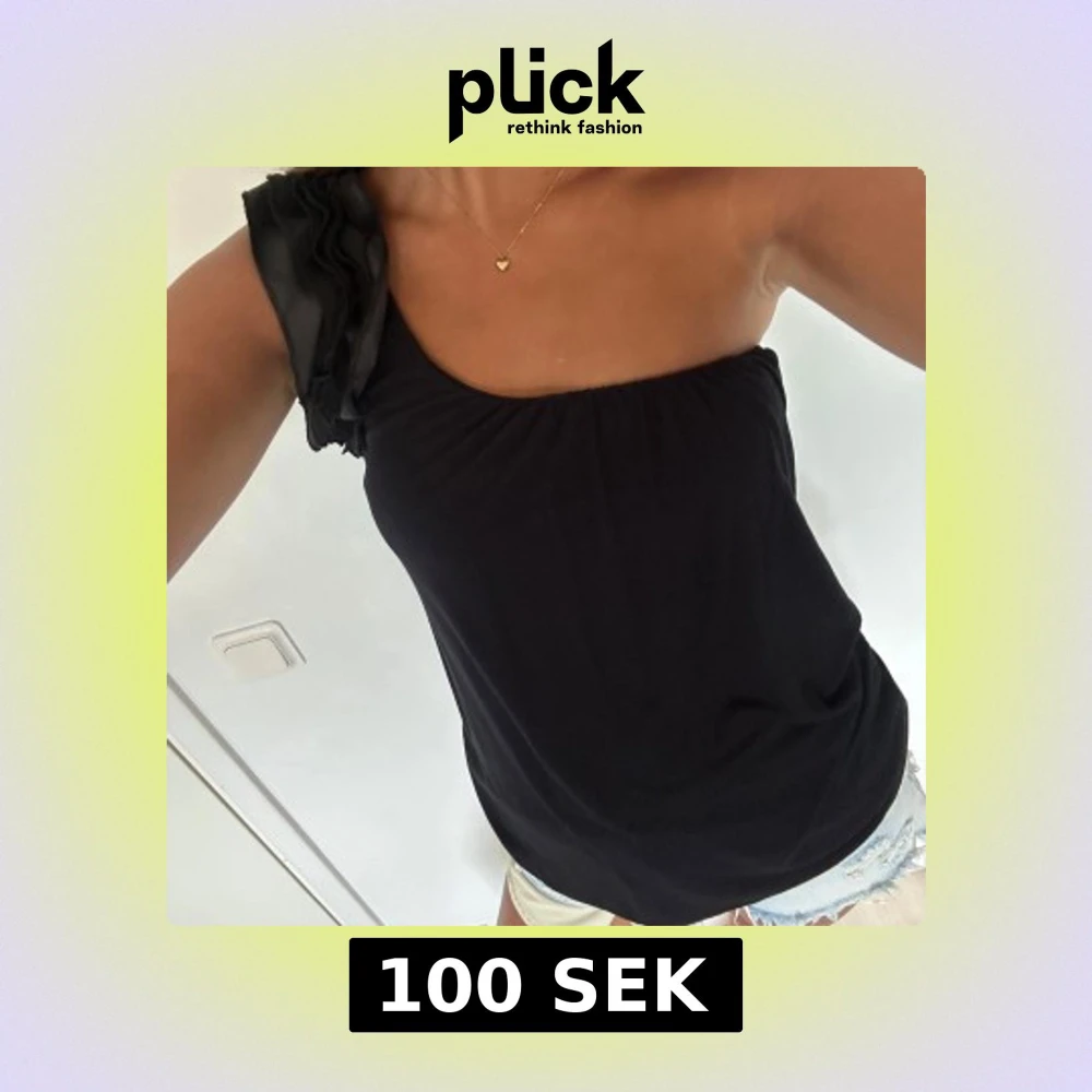 Jättesöt one shoulder topp med volang på ena axeln, perfekt till fest! 💕