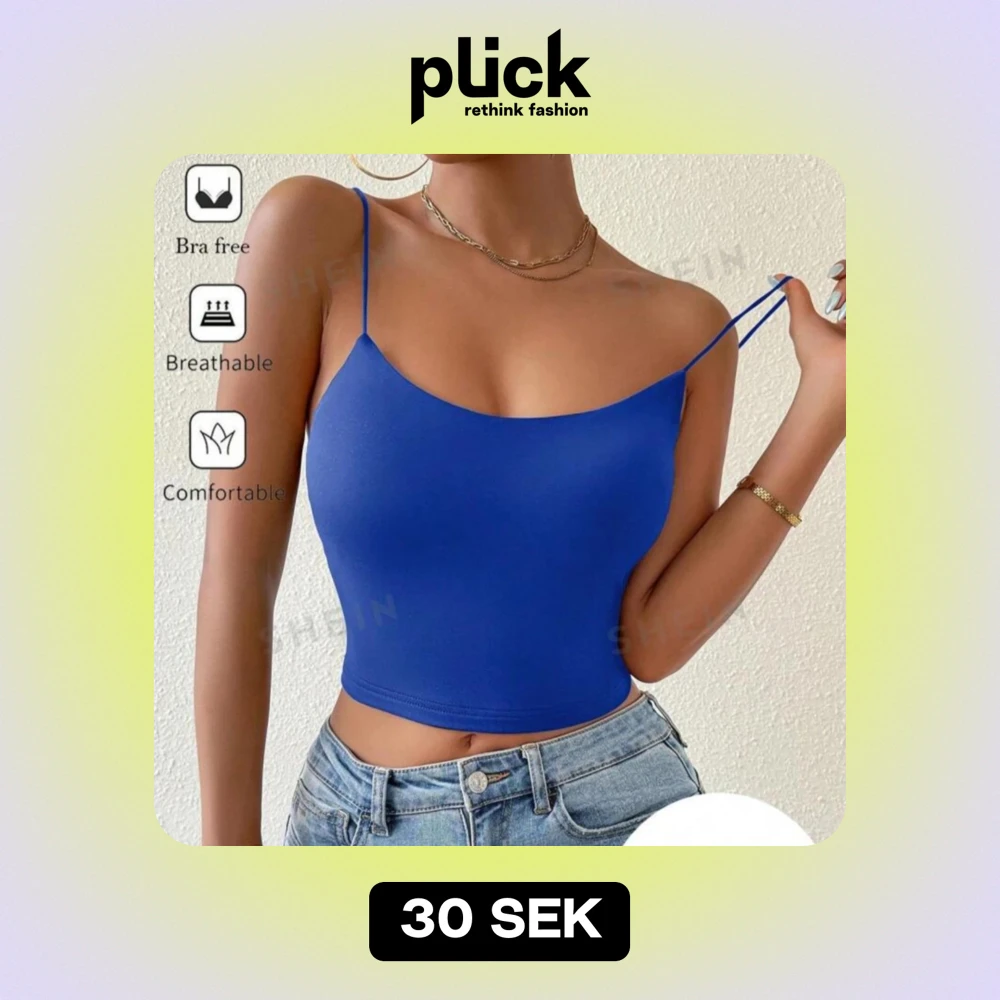 Snygg blå topp med smala axelband och öppen rygg. Perfekt för sommardagar eller en utekväll. Toppen är croppad och tillverkad i ett bekvämt och andningsbart material.
