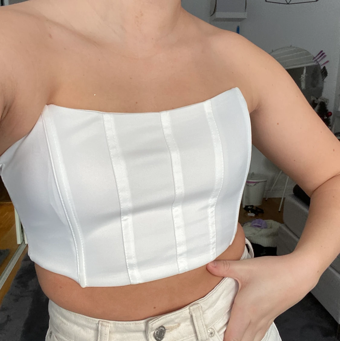 Jättefin vit topp som tyvärr är för stor för mig😩 den e väldigt stretchig och sitter annars bra på!!
