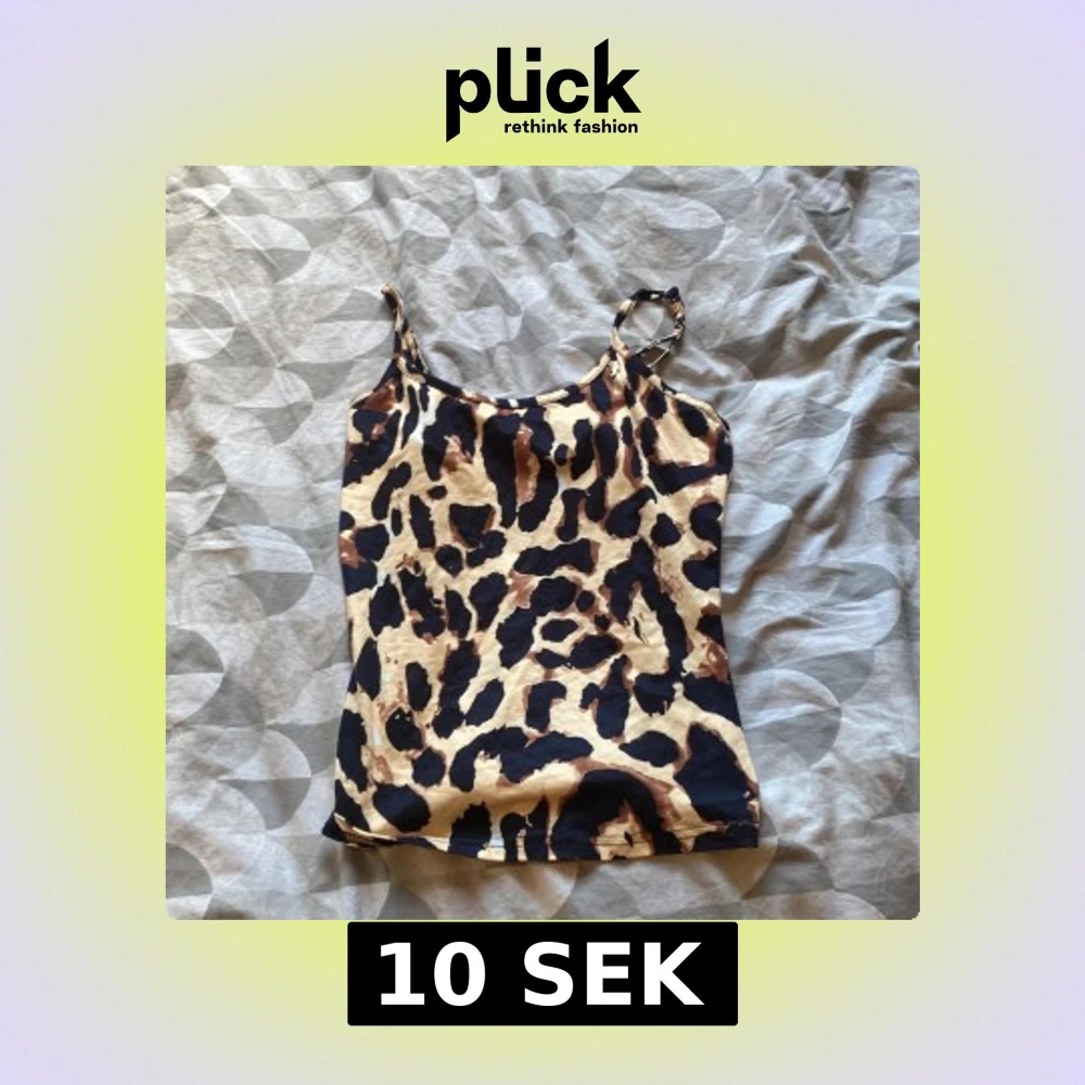 Säljer en snygg leopardmönstrad linnetopp i beige, svart och bruna toner. Toppen har smala axelband och är tillverkad i ett stretchigt material som sitter skönt på kroppen. Perfekt att styla med jeans eller kjol för en cool look.