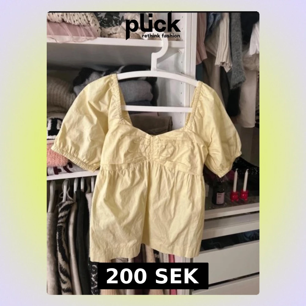 Söt ljusgul topp med puffärmar och fyrkantig ringning. Tillverkad i mjuk bomull och har en avslappnad passform med rynkade detaljer under bysten. Perfekt för dig som gillar en feminin och trendig stil.