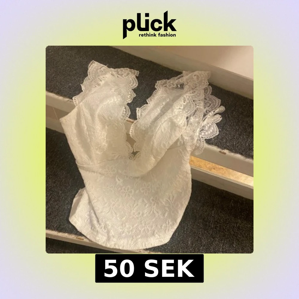 Säljer en vit blus i spets med v-ringad hals och breda volangprydda axelpartier. Blusen är perfekt till fest och nästintill oanvänd