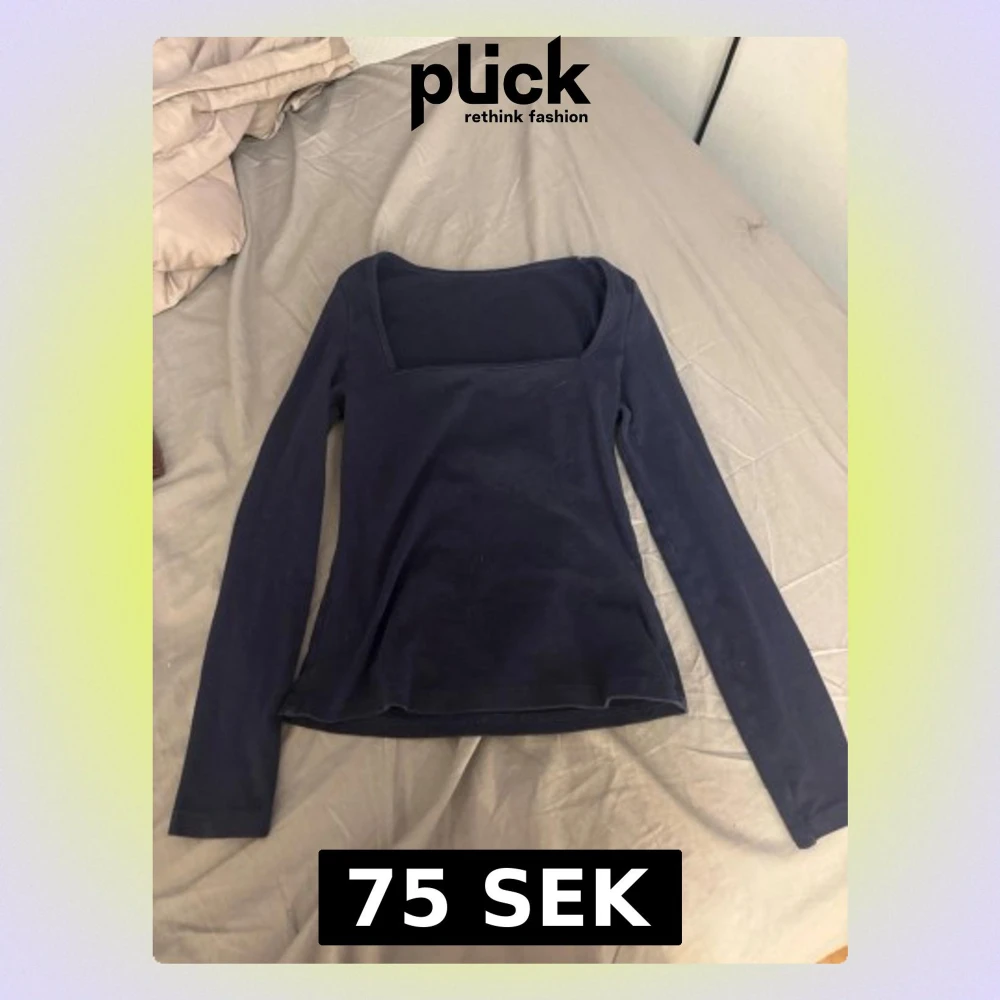En enkel och stilren mörkblå topp med lång ärm och fyrkantig ringning. Perfekt att matcha med jeans eller kjol för en clean look. Tillverkad i mjukt bomullsmaterial som känns skönt mot huden.