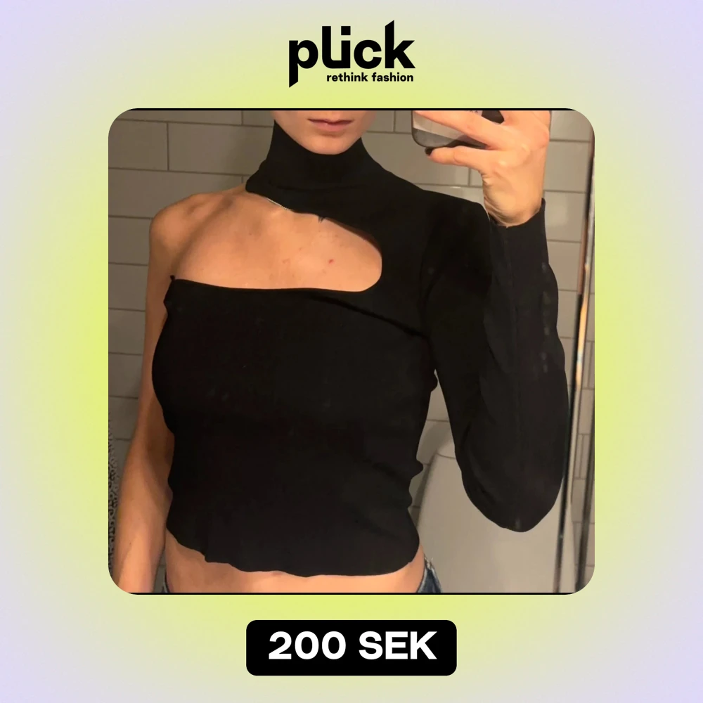 Säljer en stilren svart oneshoulder polotopp med lång ärm på ena sidan. Toppen skick!