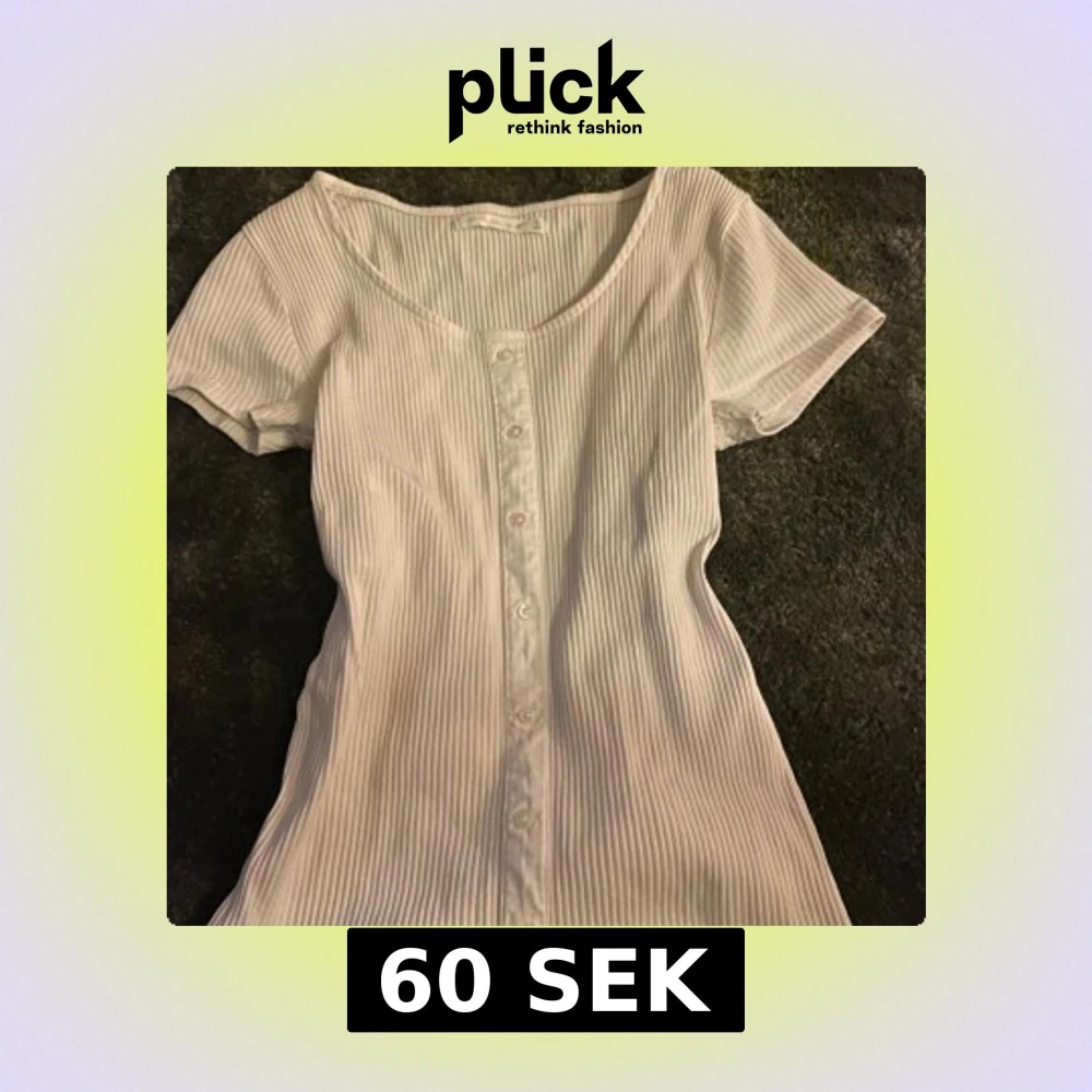 Vit ribbad topp med knappar .