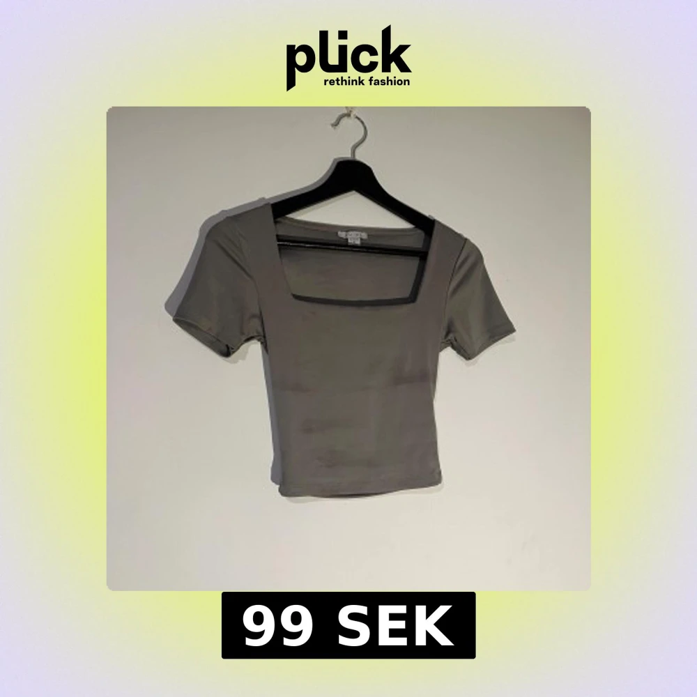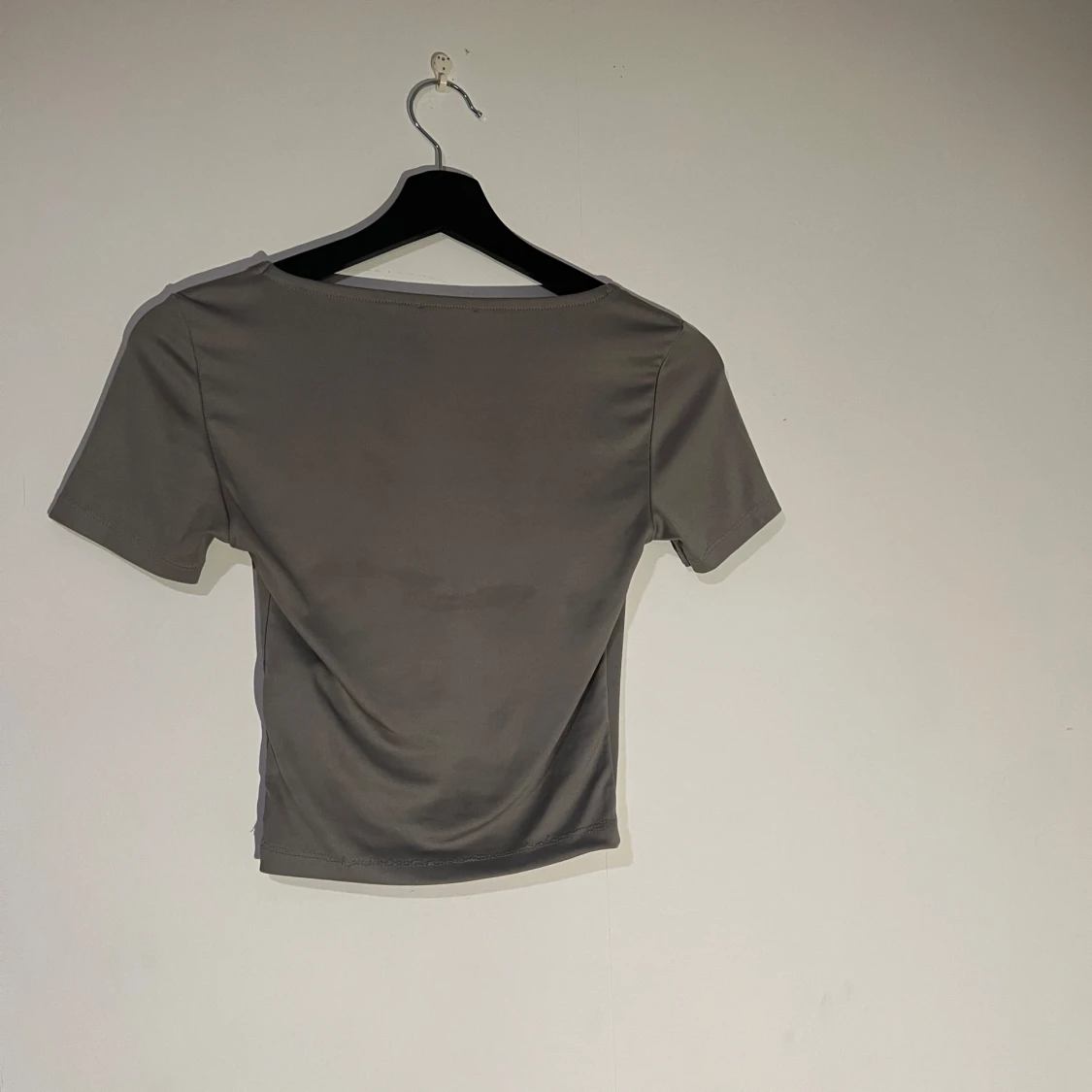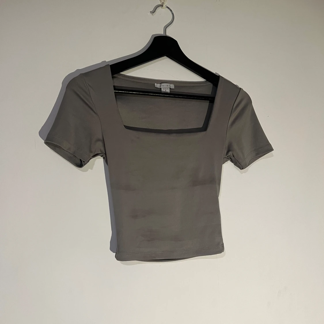 Snygg grå topp med korta ärmar och fyrkantig halsringning. Perfekt för en stilren look.